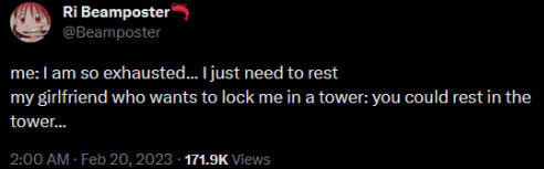 let me know if there's something you want me to warn for. i will typically put a cw on more intense content, but please be aware of my general pre-content warnings above because they are frequent topics that may become hard to avoid if you follow me. vent tweets will occur only rarely.i am aware that unfortunately my tone can be hard to discern at times and that i don't always pick up on certain things so please always feel free to ask if you ever need clarification about my intentions or what i meant by something. i do not use tone indicators but i usually clarify intention (usually in the form of including a phrase like "joking" or "not serious" in parentheses) if i think a joke could be misconstrued.i try to be very aware of social boundaries/appropriate familiarity when it comes to my sense of humor and how i speak to others, but when interacting with close friends, i can often say things that come off as rude, threatening, or argumentative because that is a friendly dynamic we have already established. you may always let me know if this sort of interaction is uncomfortable/confusing for you or oversteps a boundary.i do not typically post nsfw content aside from non-sexual nudity in artwork but there might be a suggestive joke every once in a while. if you follow me, it is your responsibility to keep your own DNI/BYF in mind when doing so.